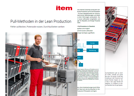 Für die praktische Umsetzung des Pull-Prinzips gibt es verschiedene Methoden, die insbesondere in der Serienfertigung ihre Vorteile ausspielen. Doch auch Unternehmen, die nicht in Serie fertigen können, profitieren von einer kontinuierlichen Verbesserung des Materialflusses. Im Detail geht es im Leitfaden um diese Methoden: