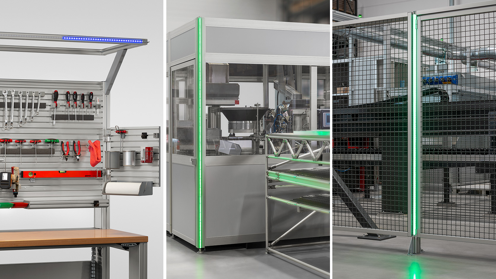 Für die flexible Signalisierung von Zuständen in Produktion und Logistik ist unser Multi-Segment RGB LED-Streifen optimal. Das bis zu sechs Meter lange Leuchtband wird über einen leistungsfähigen Controller - entweder mit I/O-Link oder mit Digital- und Analog-Eingang - angesteuert. So können Sie die Signalisierung besonders einfach in Ihre Anlagensteuerung einbinden.