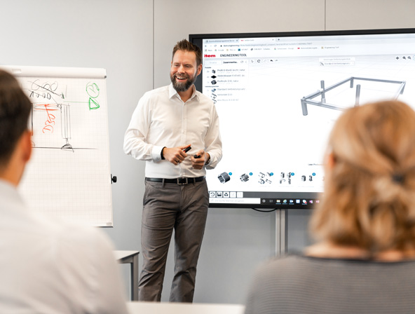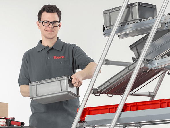 Mit den über 4.000 Komponenten von item lösen Sie jede Aufgabe in der Produktion. Ob Maschinengestelle, Automationslösungen, Lean Production, Betriebsmittel, Treppen oder Intralogistik – item unterstützt Sie mit innovativer Technik und zahlreichen Service-Leistungen, damit Sie schneller zum Ziel kommen.